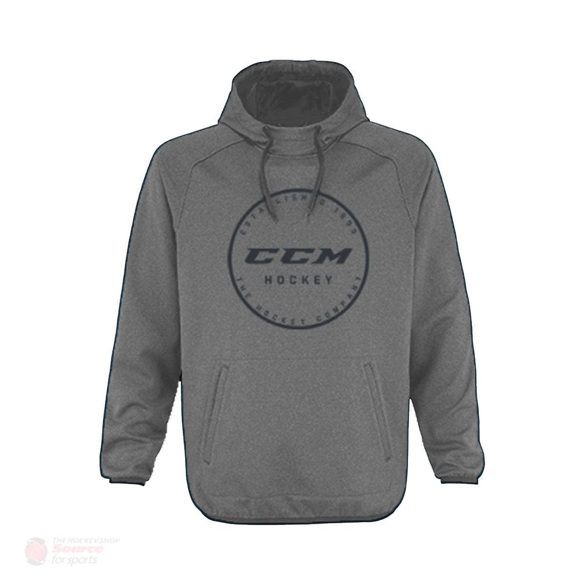 Kangaroo style pocket, drawcord adjustment elastic binding at body and sleeve opening.