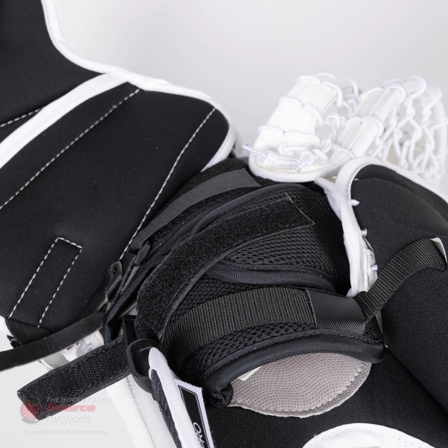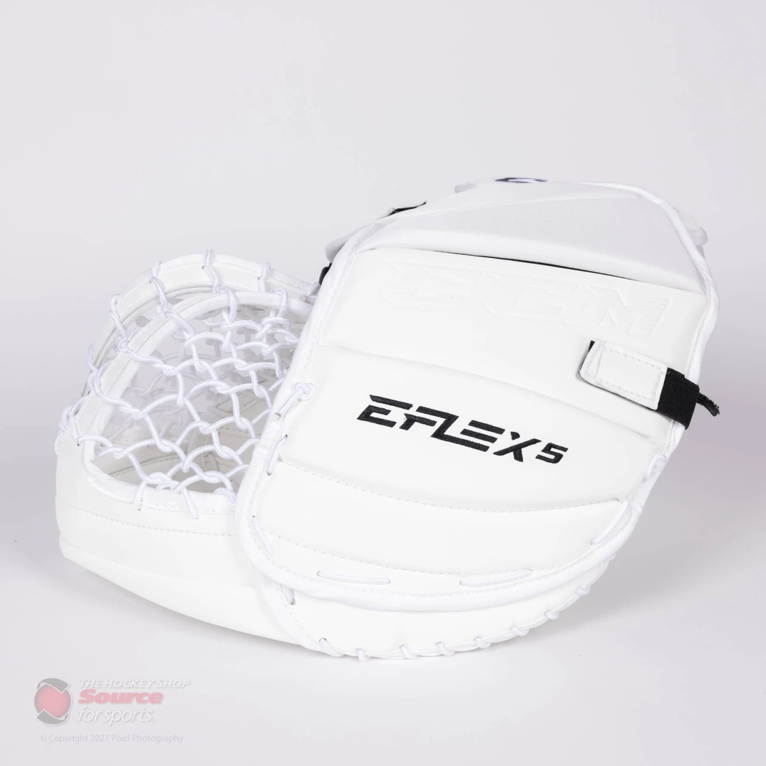 The back hand of the CCM EFlex 5 Trapper features velcro adjustments for the fingers, as well as the back of the hand. Goalies can also customize their fit by the quick release webbing strap on the wrist, which allows for easy and secure adjustment.
