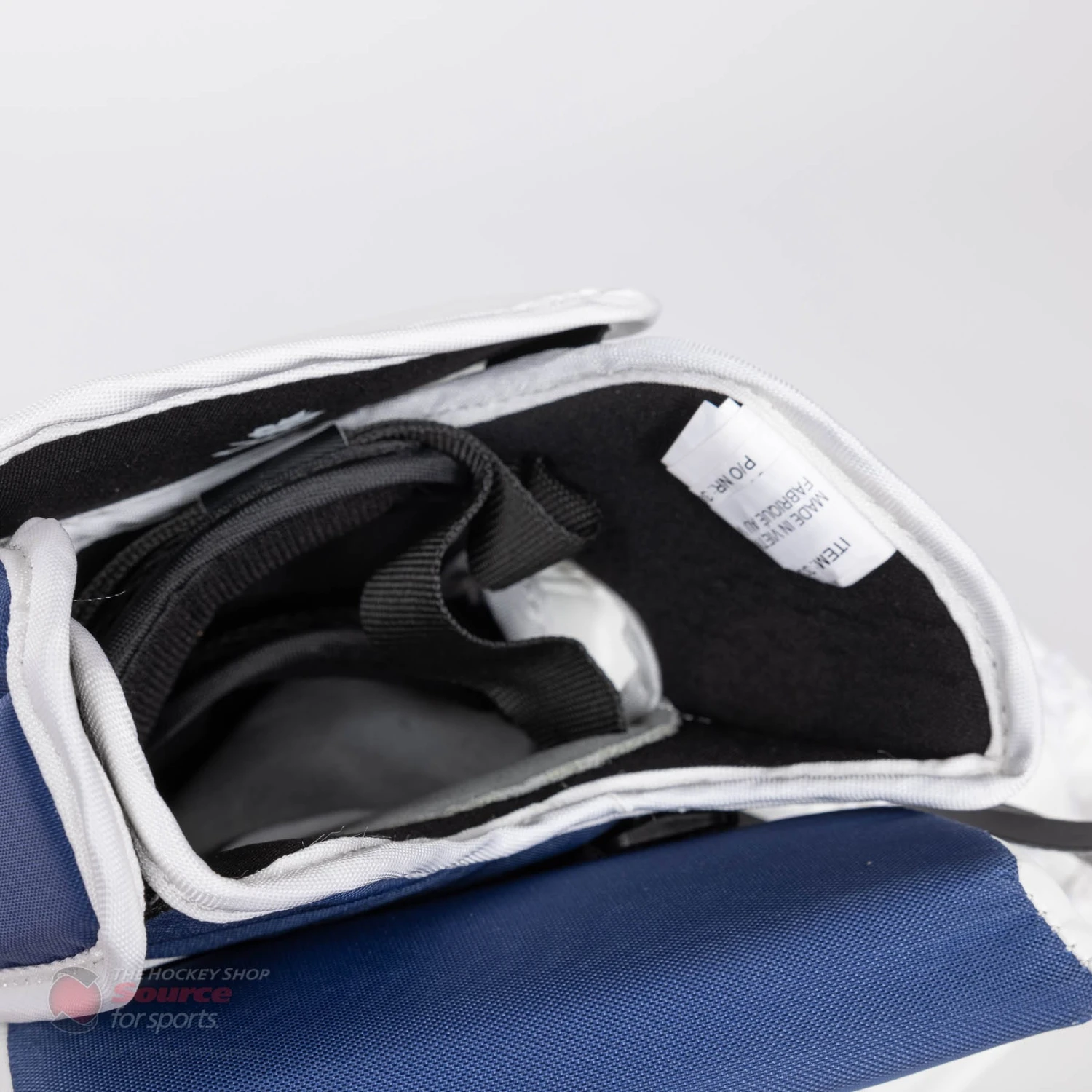 The CCM E5.5 catcher is wrapped in CCM’s proprietary SpeedSkin material. SpeedSkin on a blocker doesn’t have the same slide benefit as it does on pads. However, it is a lighter material than traditional Jenpro, and keeps the material consistent throughout a goalie’s entire setup.