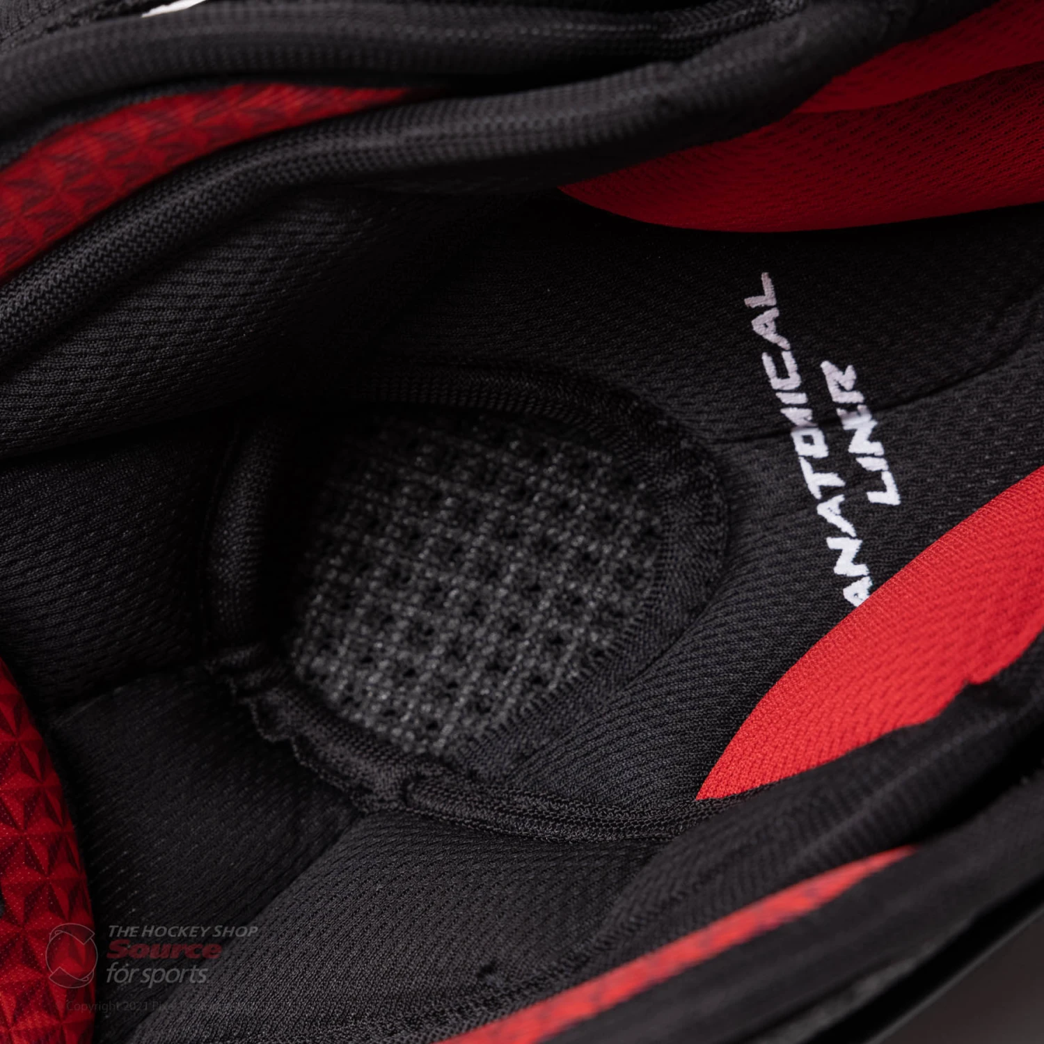 The strapping system utilizes CCM’s Upper Lock Strap with Comfort Cushion and a length-adjustable calf strap, which customizes to all calf sizes for a snug and extra-comfortable fit.