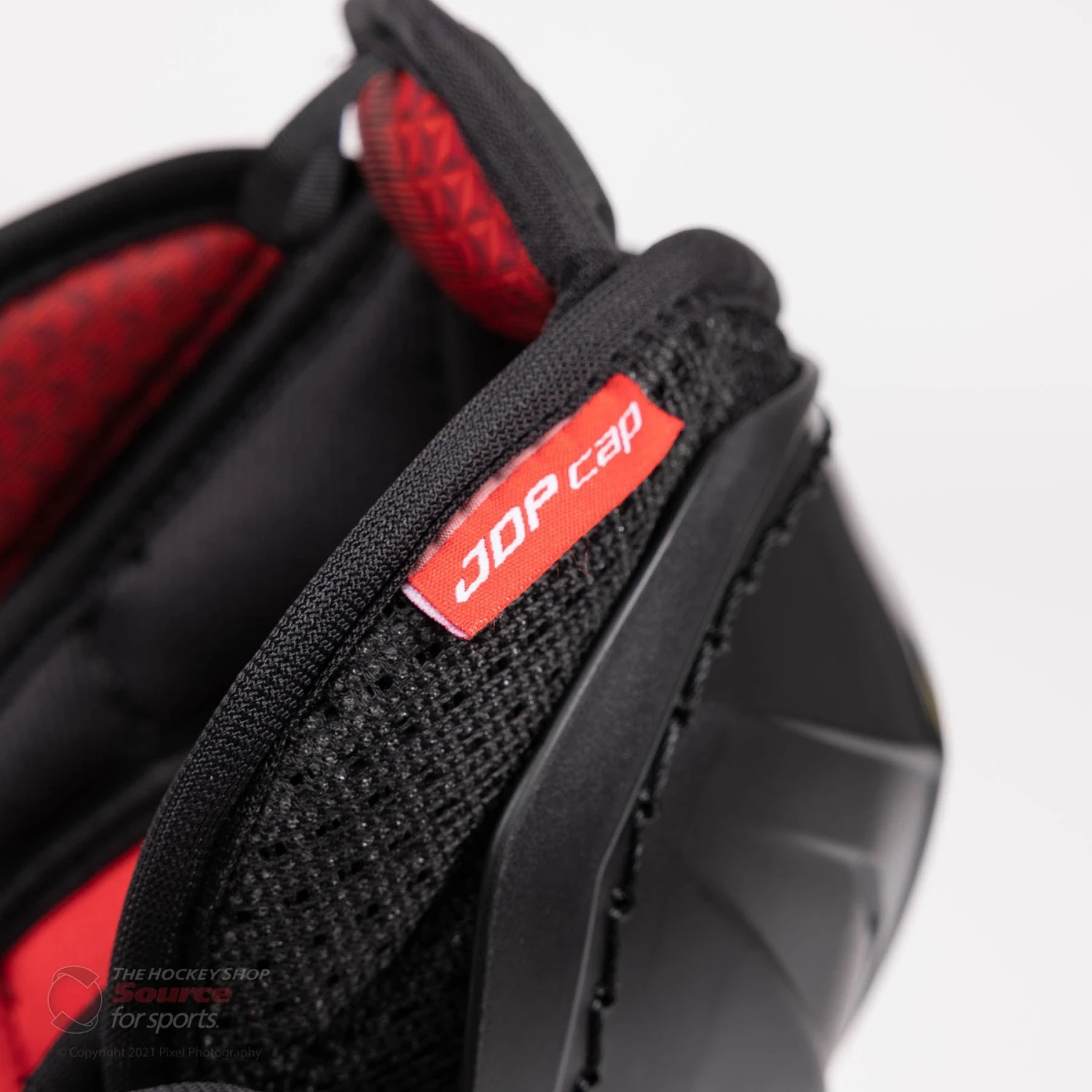 A new anatomical, narrower design gives the FT4 a connected fit that doesn’t feel bulky. While it has a narrower profile, players who frequently block shots won’t be disappointed with the coverage it gives and will love the protection it offers.