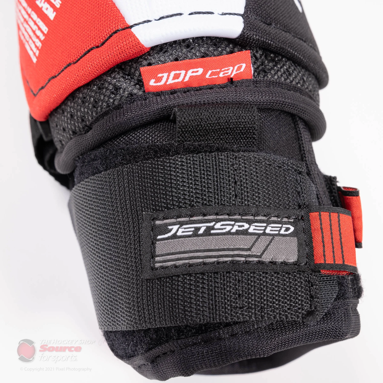 The CCM Jetspeed FT4 SR Hockey Elbow Pad features CCM’s proven 3-piece design. This design allows the pad to follow the elbow’s natural movements while an updated strapping system locks your elbow in place nicely. Zotefoam foams are used to keep the FT4 elbow pad super lightweight.