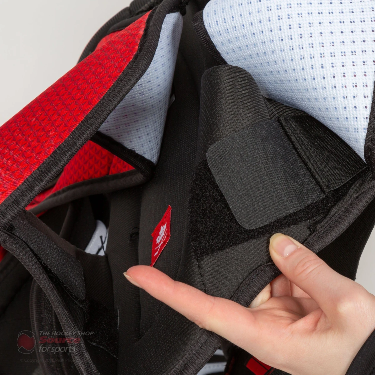 CCM innovatively designed a chest and sternum piece that is adjustable and designed to conform to any body type. It is made from premium molded foam to increase comfort as well as protection.