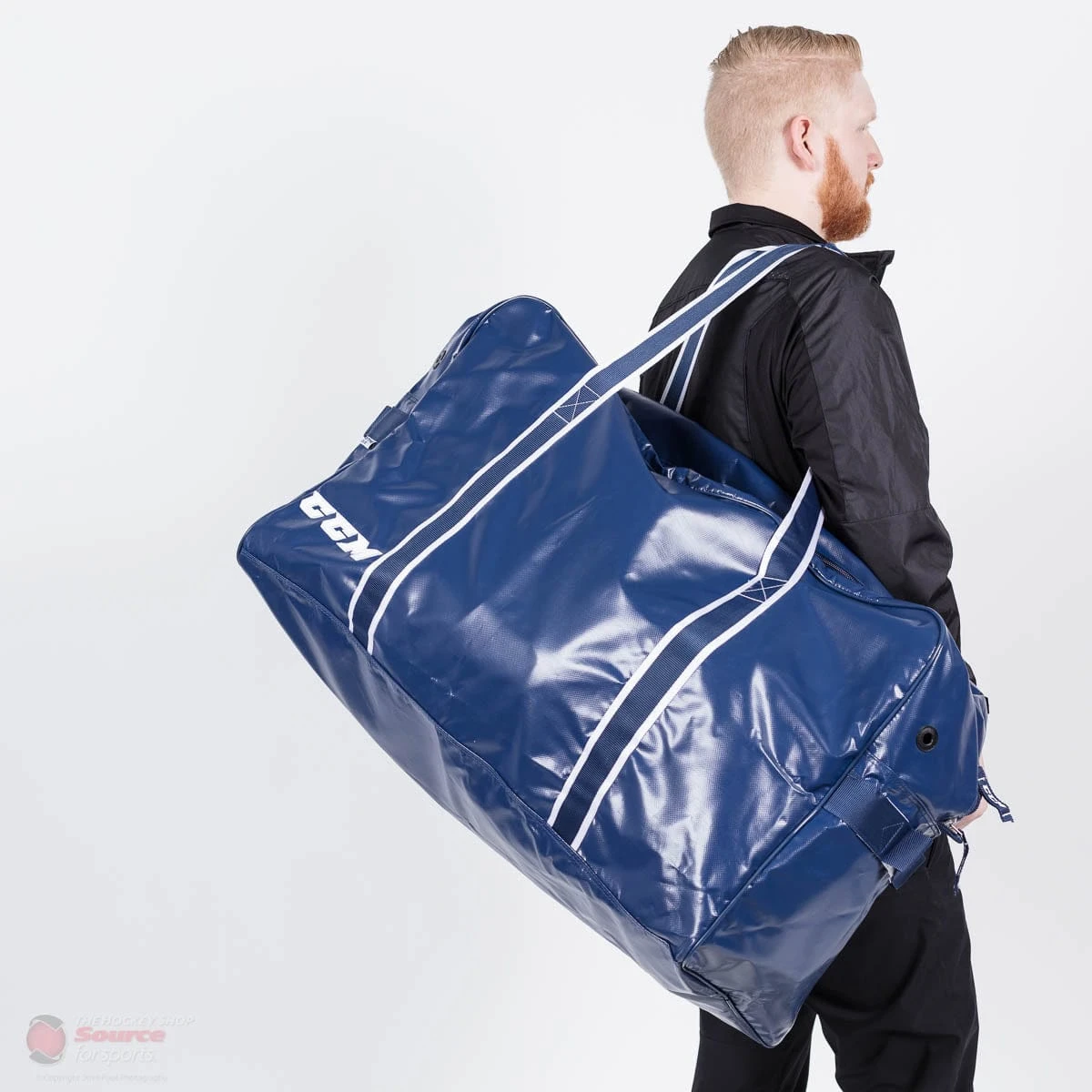 The CCM Pro player bags are manufactured with a heavy duty water-resistant tarpaulin exterior. This is seen as the premium material used on player bags as it provides great durability against not only the environment but also skate blades and equipment. Whether you are part of a high level team looking to match or just want a high quality bag the Pro Carry bag is the way to go.