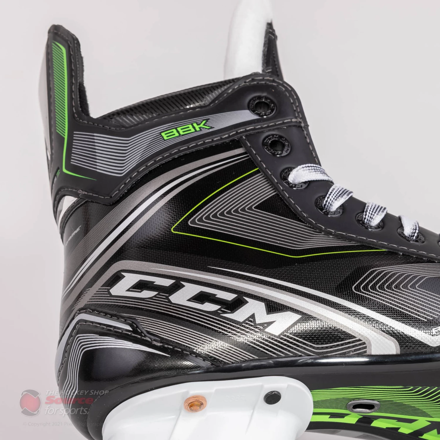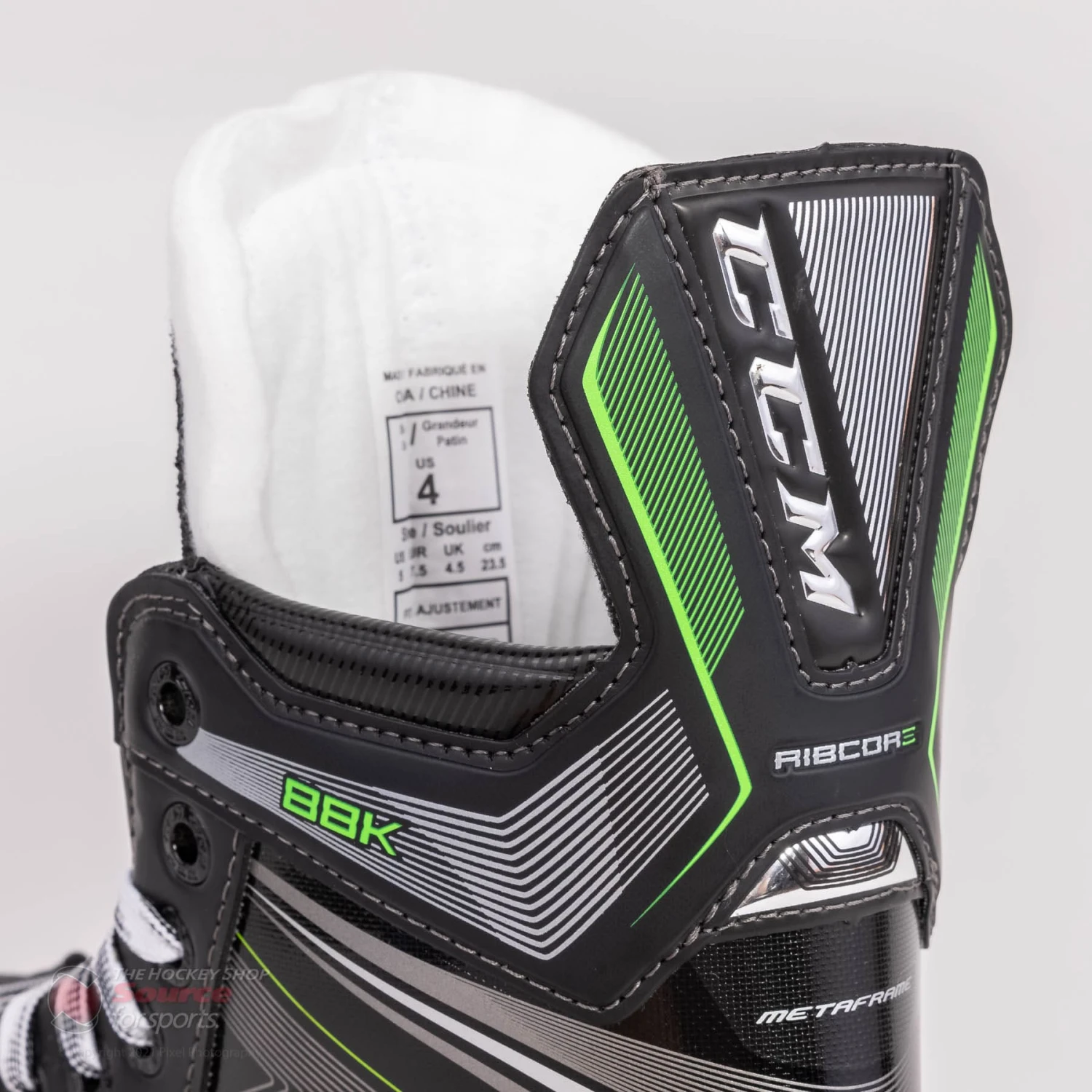 The quarter package on the CCM 88k features Metaframe technology. This technology is infused into the RFM composite boot which is an NHL-caliber lightweight composite material. The 88k also features a concave reinforced injection outsole with an exhaust system. This keeps the boot lightweight, and provides better energy transfer while the exhaust system wicks moisture out of the boot.