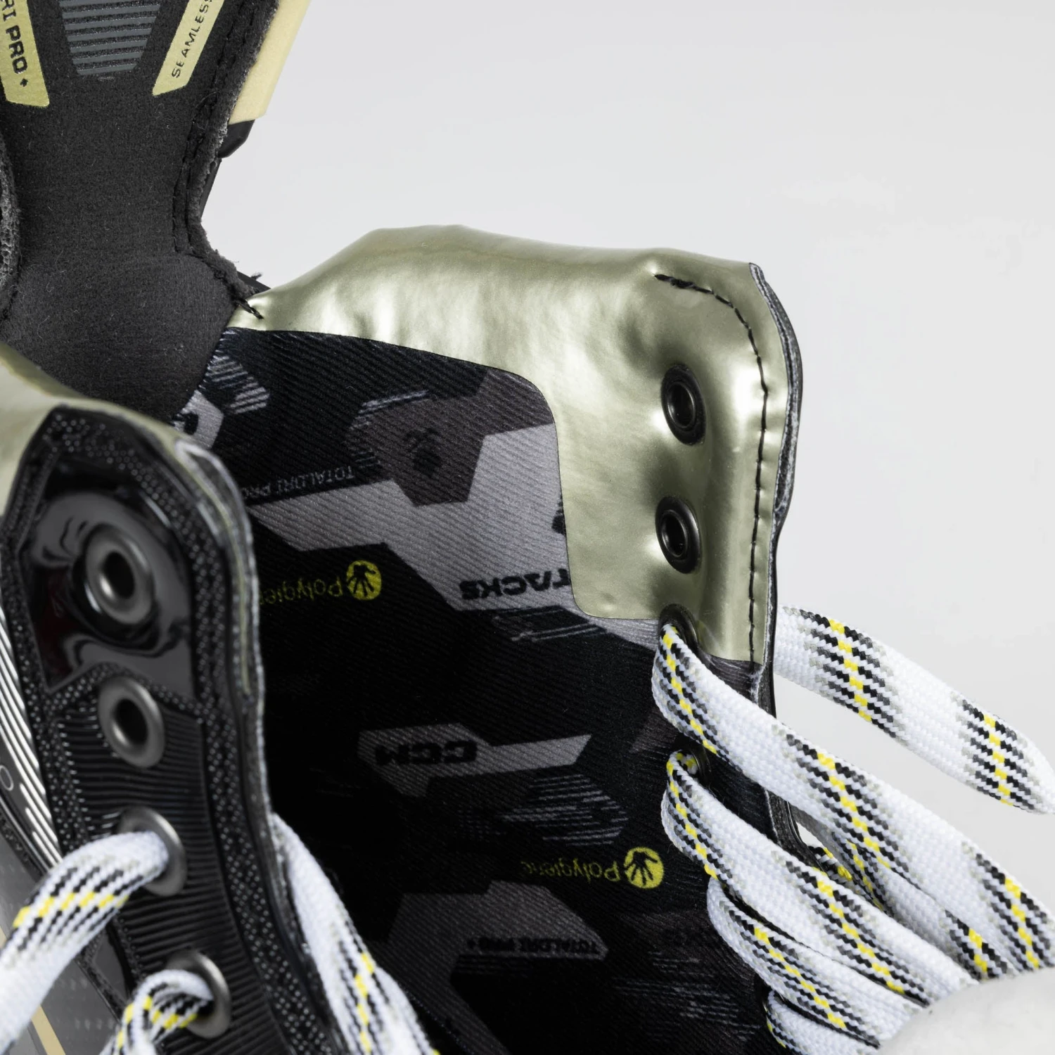 One of the most noticeable updates made to the AS-V Pro was the amended outer design and graphics. CCM rolls out new colours and text logos to represent a fresh start to the line in 2022. In addition to the modern, techy styles on the side of the boot, you’ll also notice the new gold graphics to replace the old yellow, as well as the clean “Tacks” and “AS-V” redesigned logos all throughout.