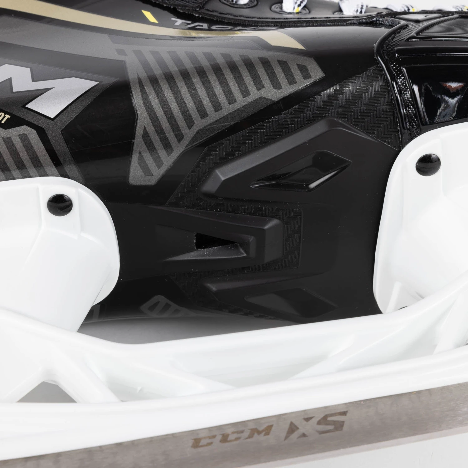 One of the most noticeable updates made to the Tacks series was the amended outer design and graphics. CCM rolls out new colours and text logos to represent a fresh start to the line in 2022. In addition to the modern, techy styles on the side of the boot, you’ll also notice the new gold graphics to replace the old yellow, as well as the clean “Tacks” and “AS-570” redesigned logos all throughout.