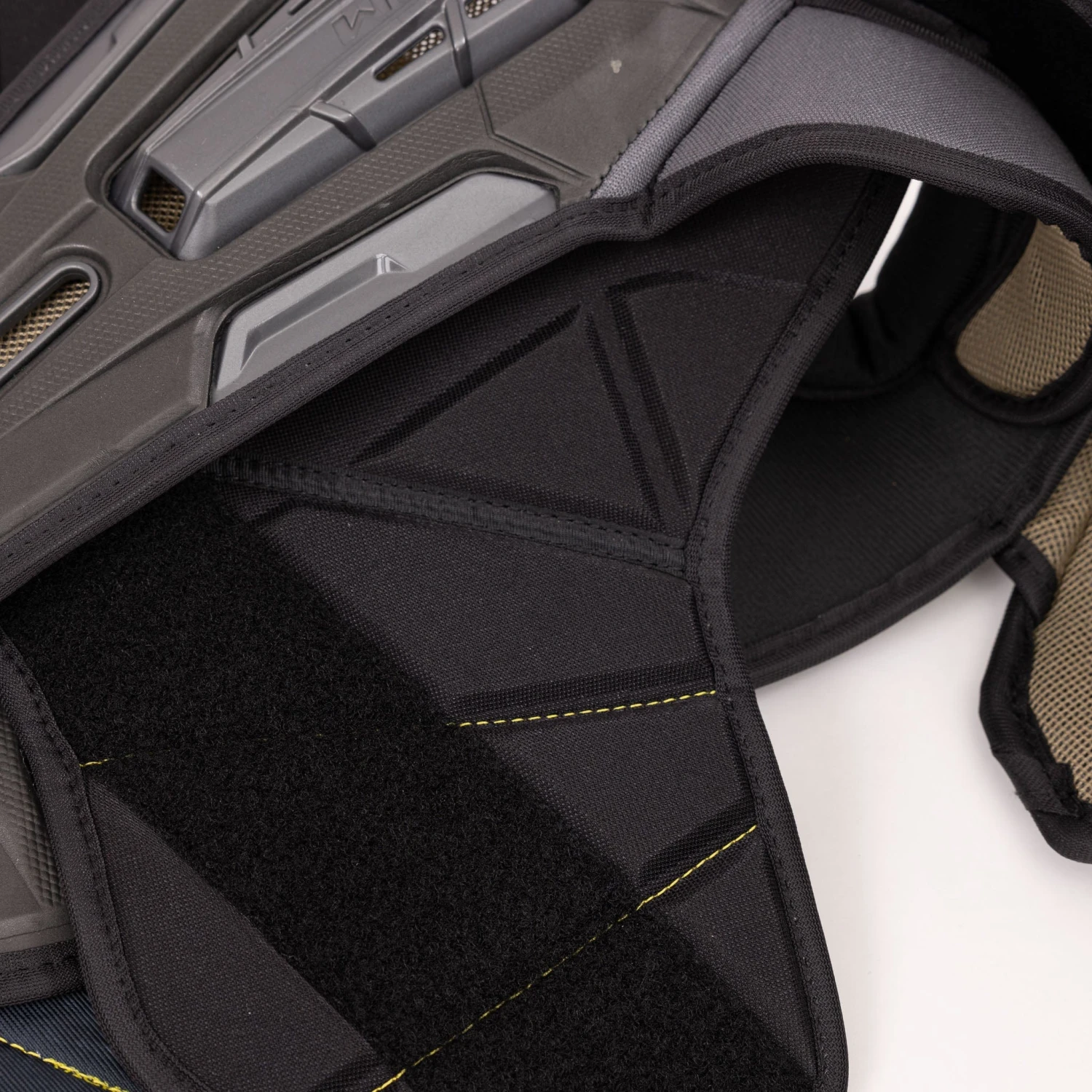 The biceps on the Vector Premier can be adjusted in both length and width, allowing you to customize your fit for wherever you need bicep protection with its ADPTFit straps. Protective features in this area include an injected plastic guard and a foam bicep cushion.
