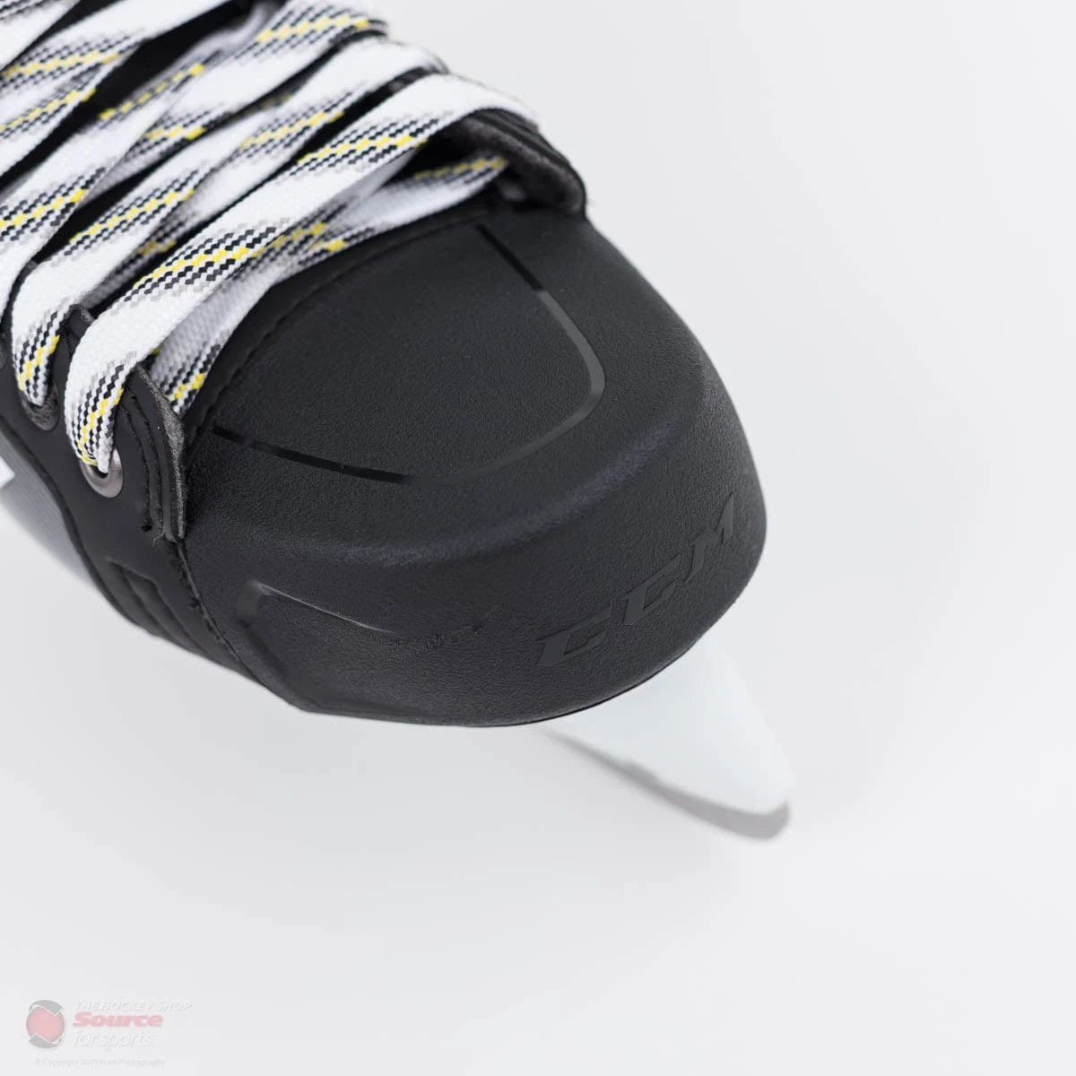 The tongue on the CCM Tacks Vector is taken from the AS1 skate, which uses a Tri-Tech 10mm white felt tongue with molded lace-bite protector for advanced protection, comfort, and forward flex. Moving down the boot, a SpeedBlade holder provides 4mm of extra height from the ice to allow for up to 10% greater turning radius for a more aggressive angle of attack and the SpeedBlade Stainless runner steel resists oxidation and rusting.