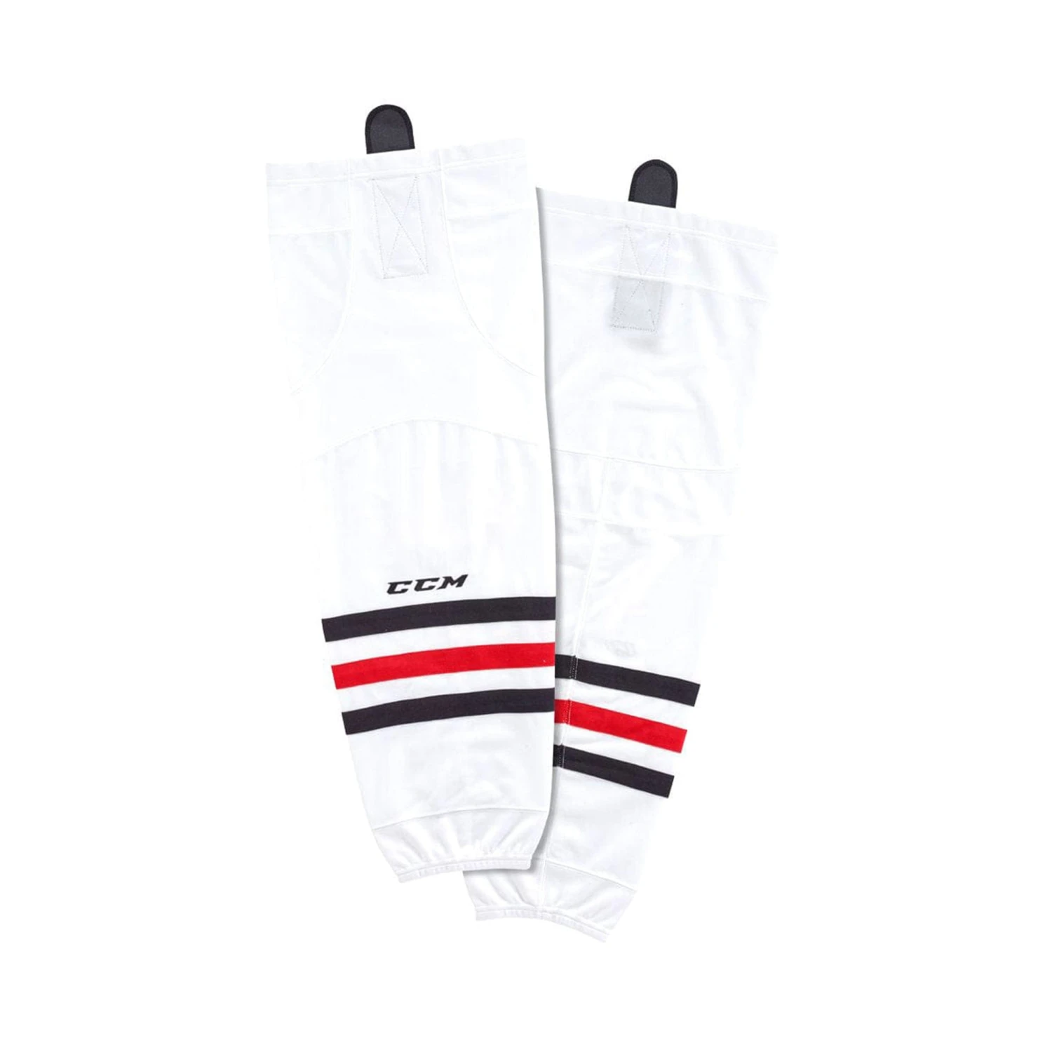 The Chicago Blackhawks CCM Quicklite 8000 game socks have been designed for NHL standards. Their ergonomic fit helps move with the player to maximize mobility while staying snug. The socks are made of a 200gsm (gram per square meter) high performance, and breathable QLT knit polyester which maintains its shape and enhances snag resistance.